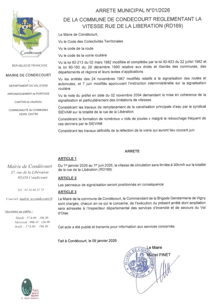 Le maire vient de prendre un arrêté de limitation de vitesse de circulation sur toute la rue de la Libération.